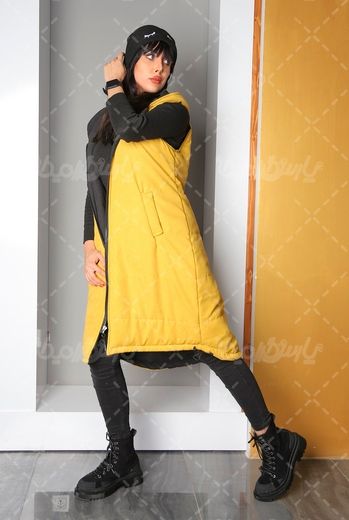 در تصویر بالا کاپشن خردلی زنانه بسیار زیبا را مشاهده میکنید.