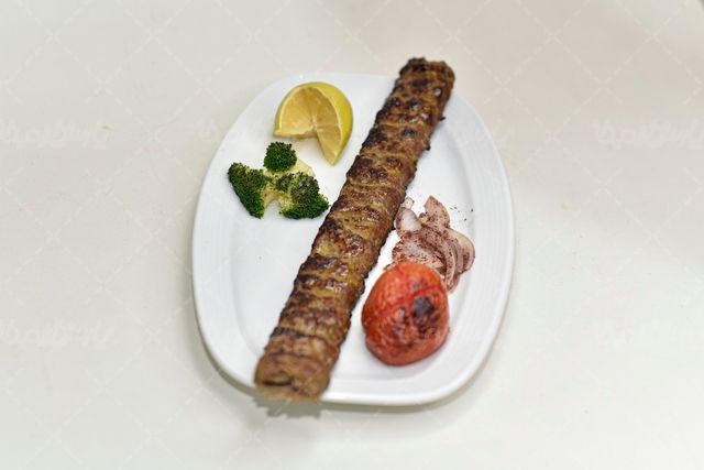 در این تصویر از کباب کوبیده ، گوجه کبابی ، کلم بروکلی استفاده شده است.