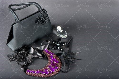 توضیحات : کیف زنانه مشکی گلوبند گل سر کلیپس