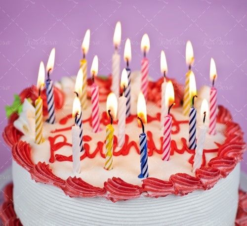 توضیحات : کیک تولد شمع راه راه قنادی شیرینی سرا شیرینی فروشی کیک خامه ای