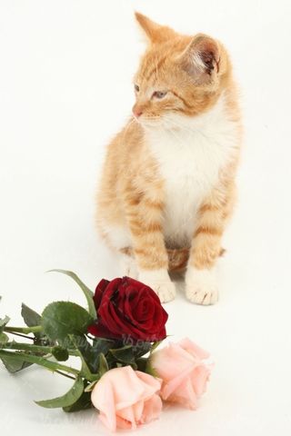Domestic cat ,گربه خانگی ,عکس با کیفیت گربه خانگی ,تصویر با کیفیت گربه خانگی ,دانلود رایگان عکس گربه خانگی ,حیوان خانگی, گل رز ,رز قرمز ,گل, گل طبیعی ,گربه
