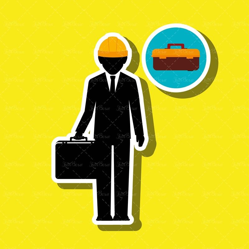 وکتور آدمک کت و شلوار مشکی کیف مهندسی جعبه ابزار کلاه ایمنی کار ( وکتور آدمک کت و شلوار مشکی, کیف مهندسی, جعبه ابزار , کلاه ایمنی کار )