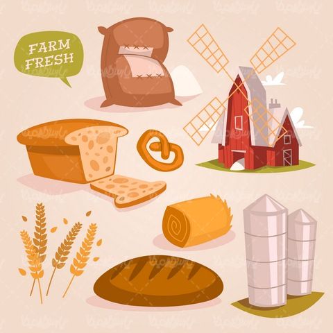 وکتور آسیاب بادی, وکتور نان, وکتور خوشه گندم, وکتور کیسه آرد ,vector وکتور,eps,EPS