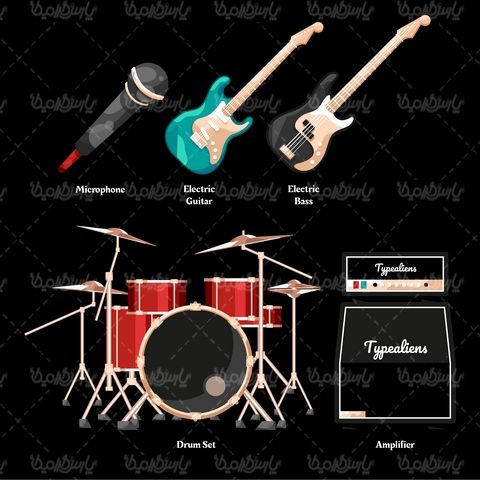 در وکتور برداری از آلات موسیقی استفاده شده است.