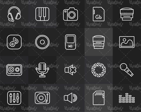 Vector Icons ,وکتورمجموعه آیکن ,وکتور آیکن, وکتور آیکن فلت, وکتور آیکن سیاه قلم, وکتور آیکن مشکی,وکتور آیکن ضبط صدا, vector, وکتور, EPS ,eps