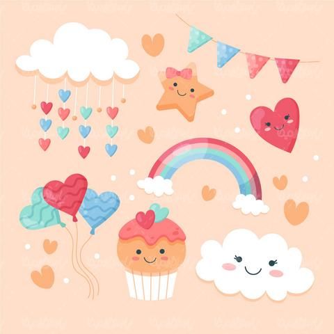 کاپ کیک , Vector Cloud , ابر , شرشره , کارتون , رنگین کمان , وکتور ابر , قلب , برنامه کودک ,