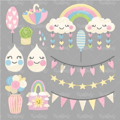 وکتور ابر , برنامه کودک , رنگین کمان , شرشره , Vector Cloud , ابر , چتر , کارتون , گلدان , قطره آب ,