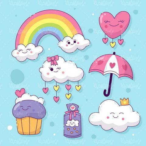 وکتور ابر , رنگین کمان , Vector Cloud , برنامه کودک , قلب , شرشره , کارتون , ابر ,