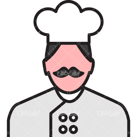 وکتور برداری آواتار سرآشپز همراه با آیکن شخصیت ها و لباس کسب کارهای مختلف