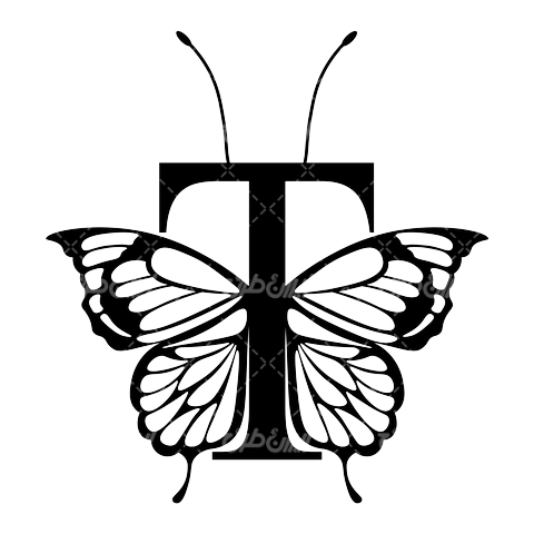 وکتور برداری تتو پروانه سیاه قلم همراه با طرح خالکوبی و حروف لاتین