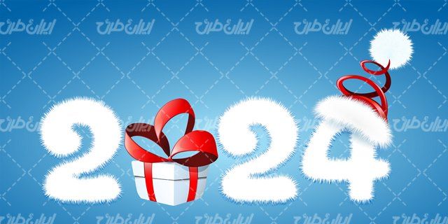 وکتور برداری سال 2024 همراه با سال جدید میلادی و هدیه