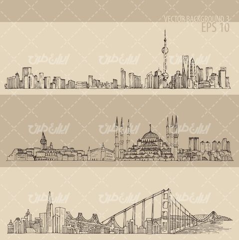 شهرهای دنیا , وکتور شهر , شهر سیاه قلم ,