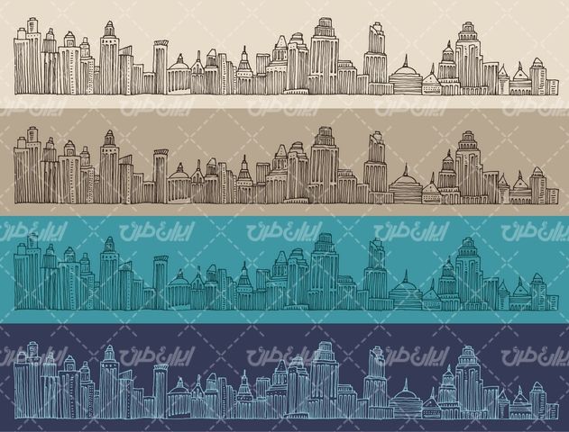 وکتور برداری سیاه قلم شهر به همراه شهرهای سیاه قلم