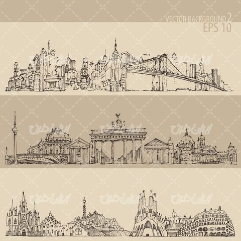 وکتور برداری سیاه قلم شهر به همراه شهرهای سیاه قلم