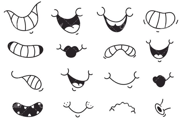 وکتور برداری شکل لبخند همراه با خنده و شکلک سیاه قلم