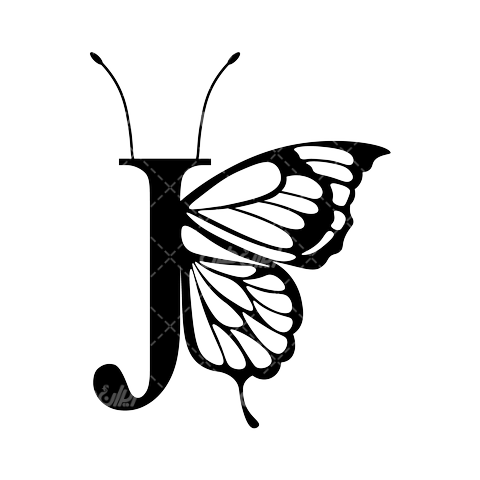وکتور برداری طرح خالکوبی پروانه سیاه قلم همراه با طرح خالکوبی و حروف لاتین