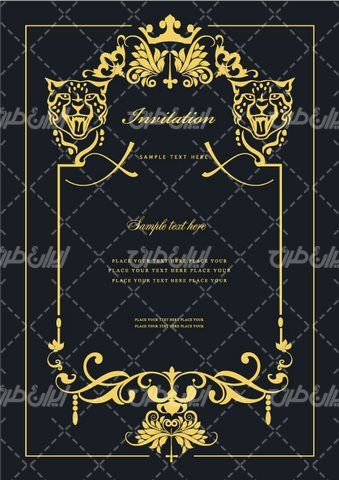 وکتور برداری فریم گل همراه با حاشیه گل طلایی و طرح تتو