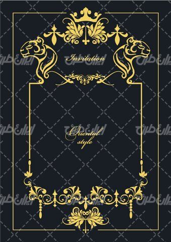 وکتور برداری فریم گل همراه با حاشیه گل طلایی و طرح تتو