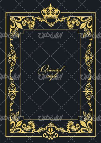 وکتور برداری فریم گل همراه با حاشیه گل طلایی و طرح تتو