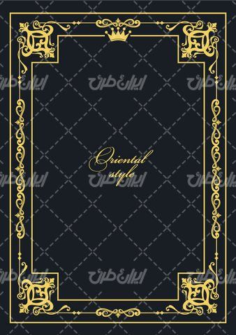 وکتور برداری فریم گل همراه با حاشیه گل طلایی و طرح تتو