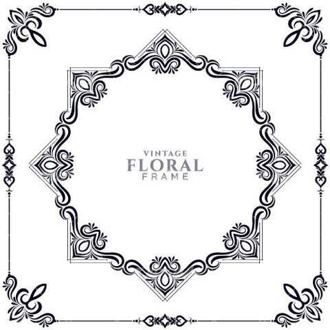 وکتور برداری فریم گل همراه با حاشیه گل و گل و بوته سیاه قلم