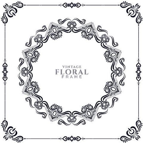 وکتور برداری فریم گل همراه با حاشیه گل و گل و بوته سیاه قلم