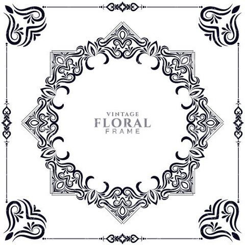 وکتور برداری فریم گل همراه با حاشیه گل و گل و بوته سیاه قلم
