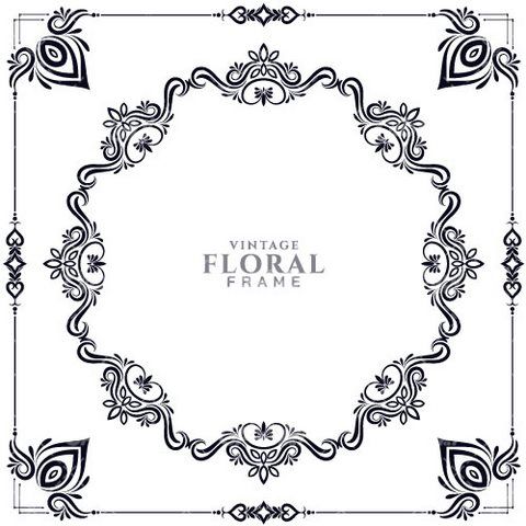 وکتور برداری فریم گل همراه با حاشیه گل و گل و بوته سیاه قلم