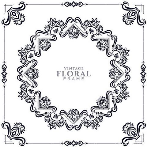 وکتور برداری فریم گل همراه با حاشیه گل و گل و بوته سیاه قلم