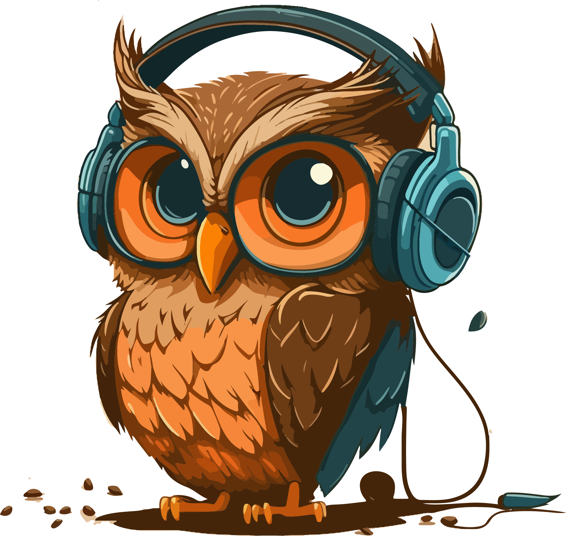 وکتور برداری لوگوی جغد همراه با هدفون و شخصیت گیم