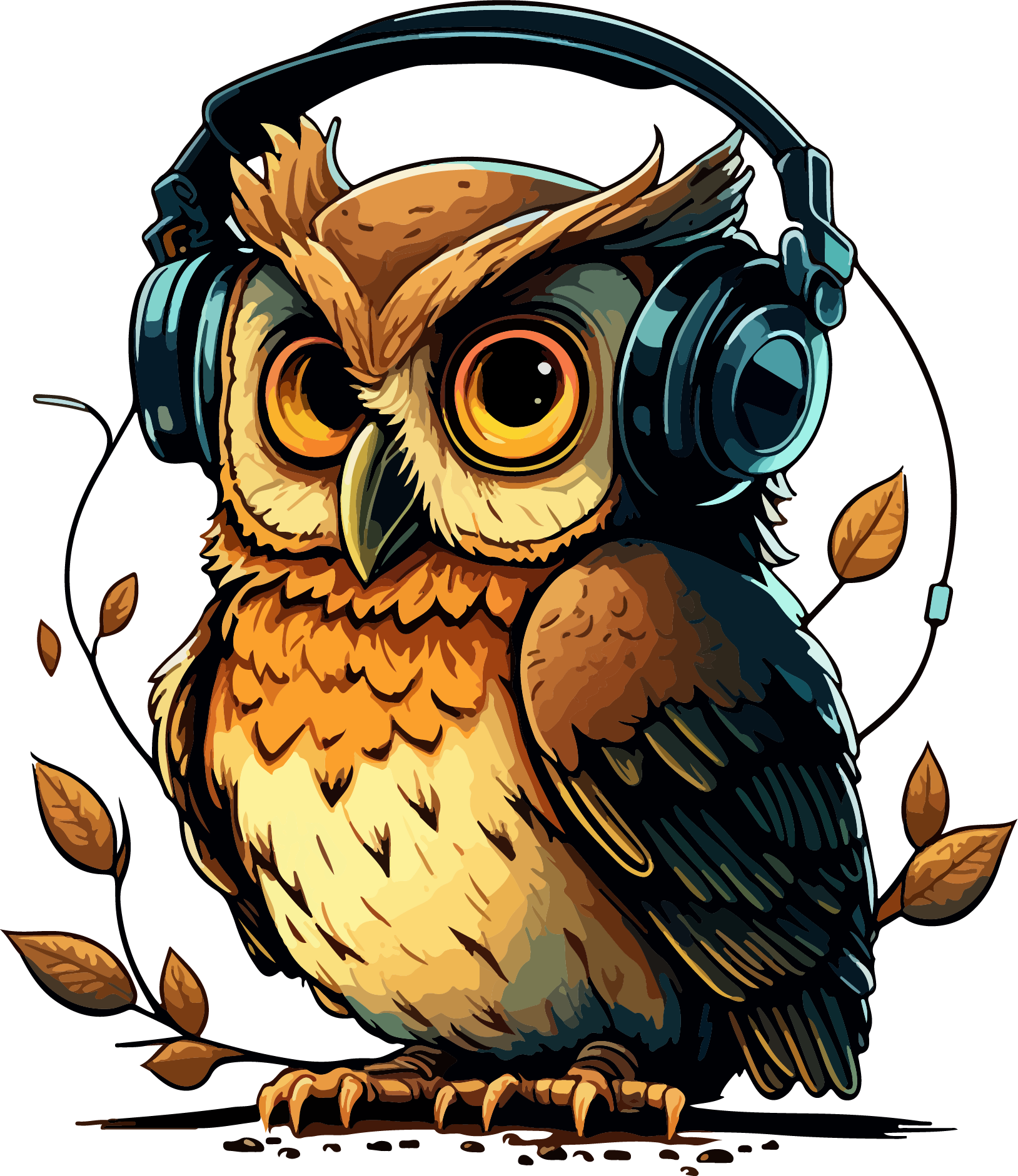 وکتور برداری لوگوی جغد همراه با هدفون و شخصیت گیم