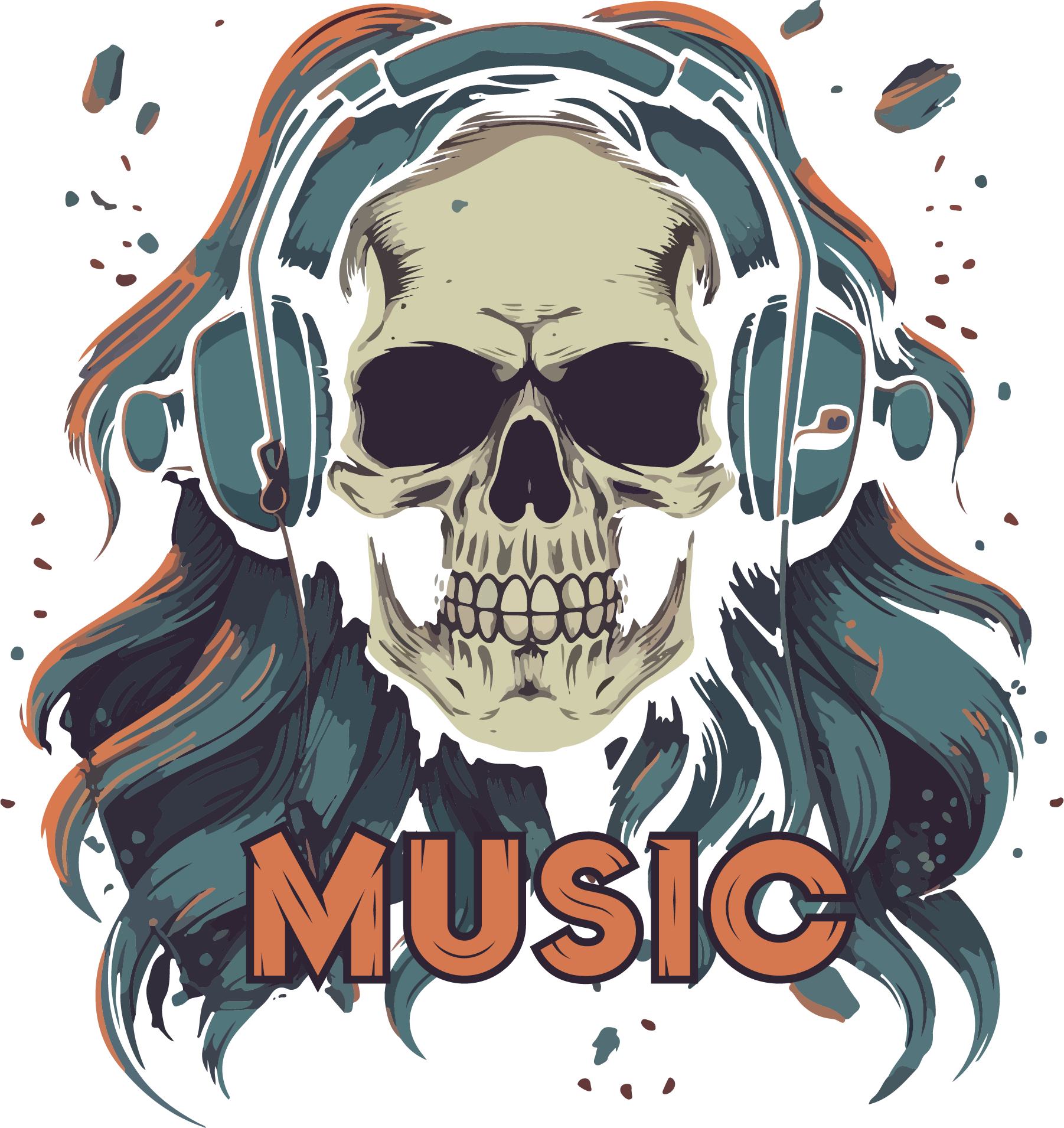 وکتور برداری لوگوی جمجمه همراه با هدفون و شخصیت گیم