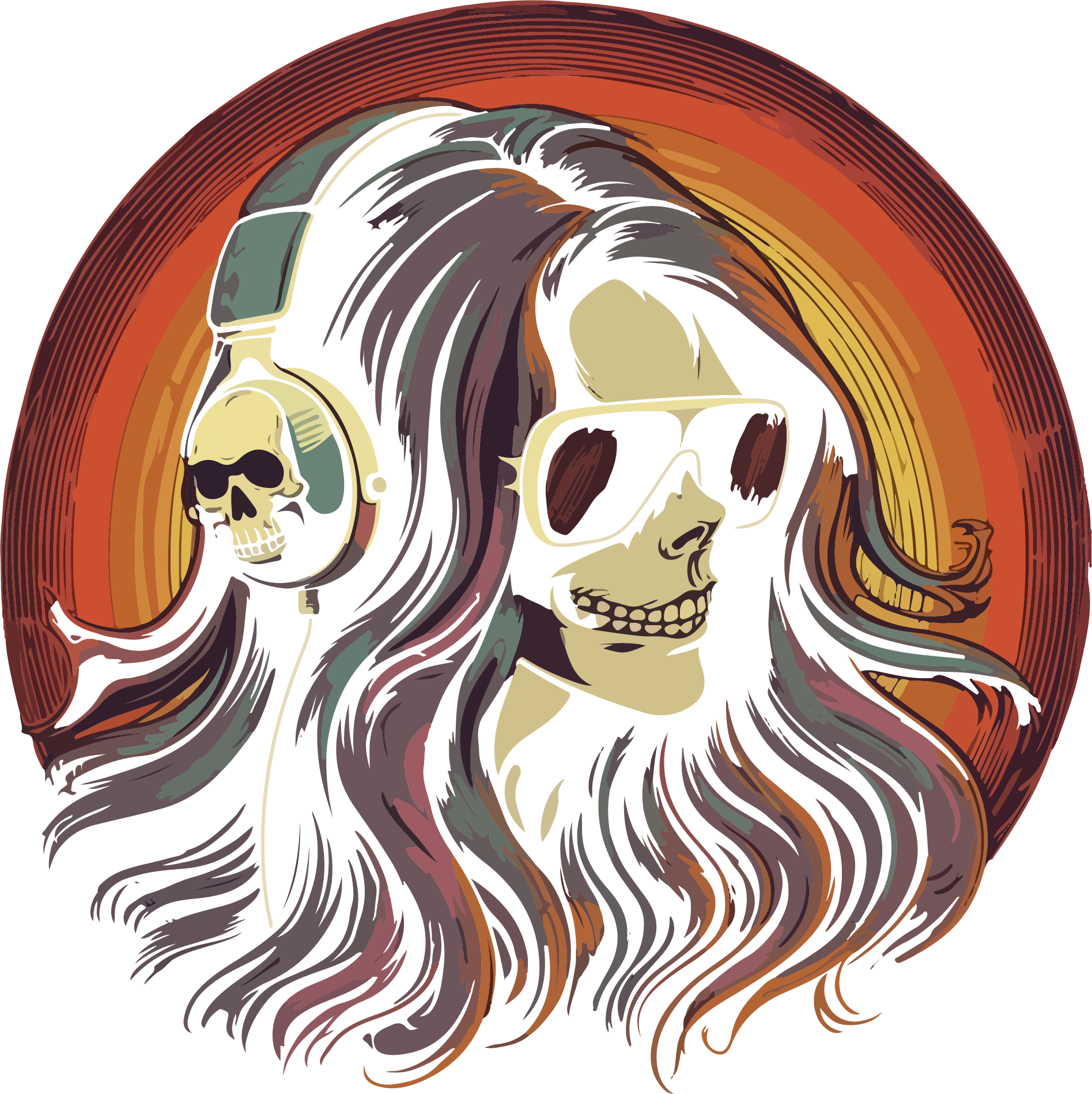 وکتور برداری لوگوی جمجمه همراه با هدفون و شخصیت گیم