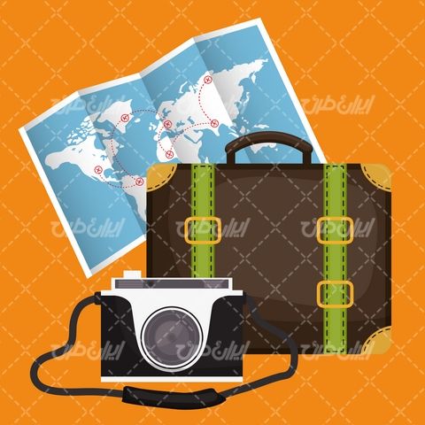 وکتور برداری مسافرت همراه با تجهیزات مسافرت و آژانس هواپیمایی