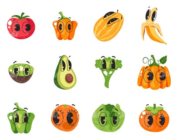 وکتور برداری میوه کارتونی همراه با شخصیت کارتونی و برنامه کودک