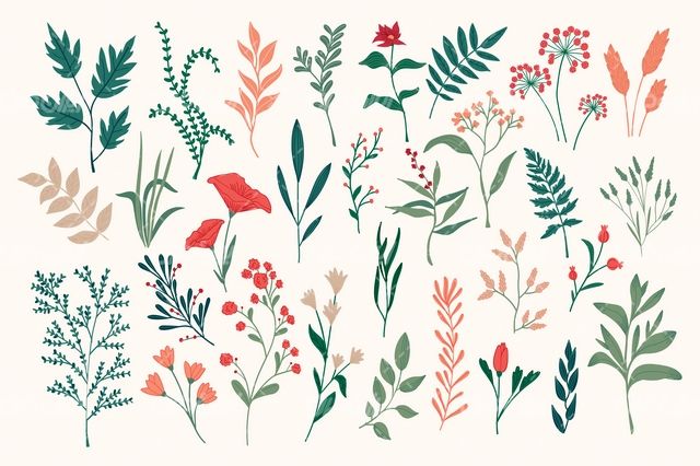 وکتور برداری گل و بوته همراه با عناصر طراحی و المان طراحی