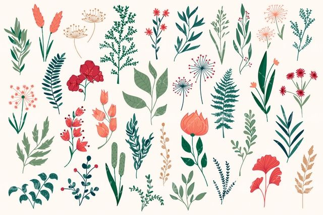 وکتور برداری گل و بوته همراه با عناصر طراحی و المان طراحی