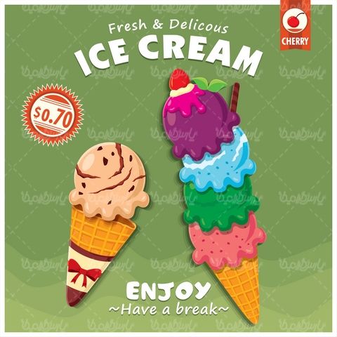در این فایل Illustrator ،بستنی و بستنی میوه ای نیز وجود دارد که قابل استفاده در طرح کارت ویزیت ، طرح بنر و دیگر طرح های گرافیکی و تبلیغاتی