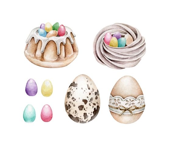 در وکتور برداری از تخم مرغ رنگی و کیک استفاده شده است.