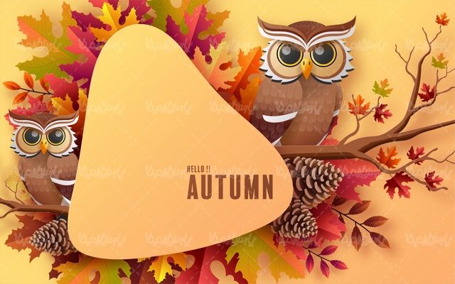 فریم برگ پاییزی , Autumn leaf vector , برگ پاییزی , وکتور جغد , پاییز , فصل پاییز , وکتور برگ پاییزی ,