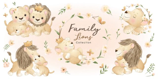 شیر جنگل , وکتور حیوان , گل و بوته , گل ,