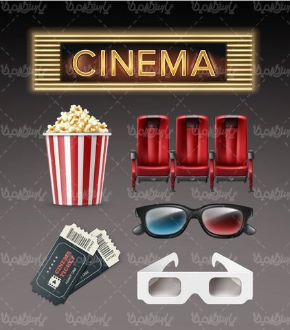 وکتور سینما , Cinema Vector , پاپ کورن , سینما , عینک سه بعدی , بلیت سینما ,