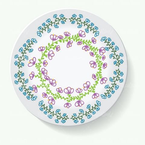 گل , گل و بوته , طرح گل و بوته , طرح روی ظروف سفالی , وکتور طرح روی بشقاب , بشقاب ,