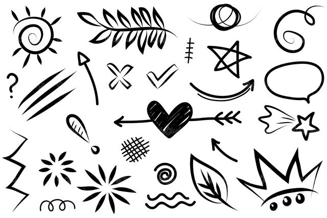 وکتور عناصر طراحی , المان طراحی سیاه قلم , قلب , المان طراحی , برگ ,