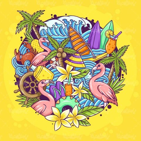 در این فایل Illustrator ،فلامینگو و درخت نارگیل نیز وجود دارد که قابل استفاده در طرح کارت ویزیت ، طرح بنر و دیگر طرح های گرافیکی و تبلیغاتی می باشد