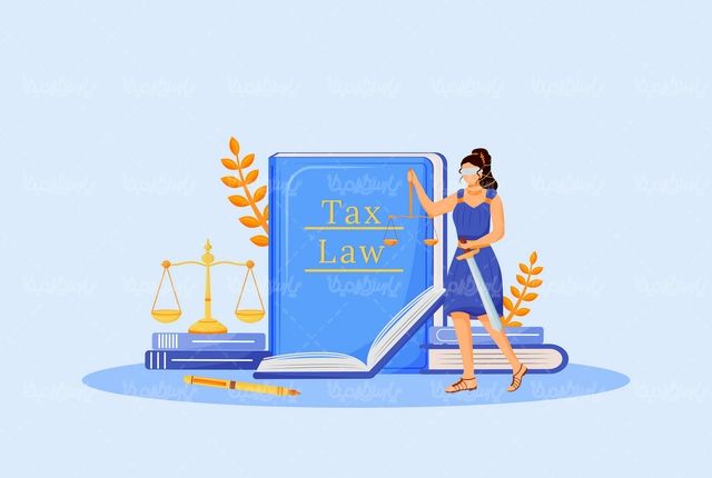 خودنویس , وکتور مالیات , ترازوی عدالت , قانون مالیات , زن ,