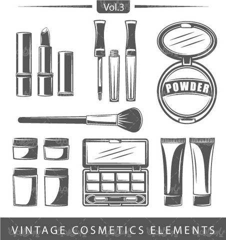 لوازم آرایش سیاه قلم , ریمل , وکتور لوازم آرایشی , وکتور لوازم آرایش , پد آرایش ,