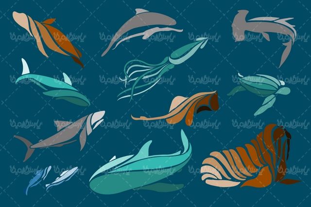 در این فایل Illustrator ،ماهی و جانور دریایی وجود دارد که قابل استفاده در طرح کارت ویزیت ، طرح بنر و دیگر طرح های گرافیکی و تبلیغاتی