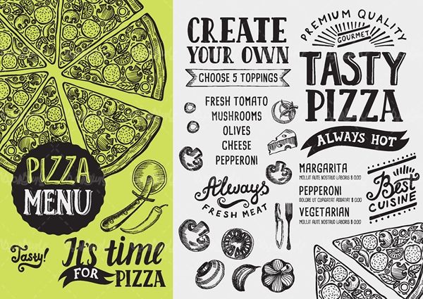 Vector menu restaurant وکتور منوی رستوران وکتور پیتزا وکتور مواد اولیه پیتزا