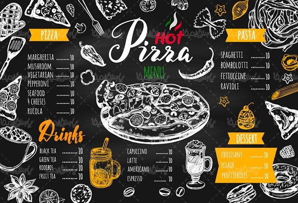 Vector menu restaurant وکتور منوی رستوران وکتور پیتزا وکتور مواد اولیه پیتزا